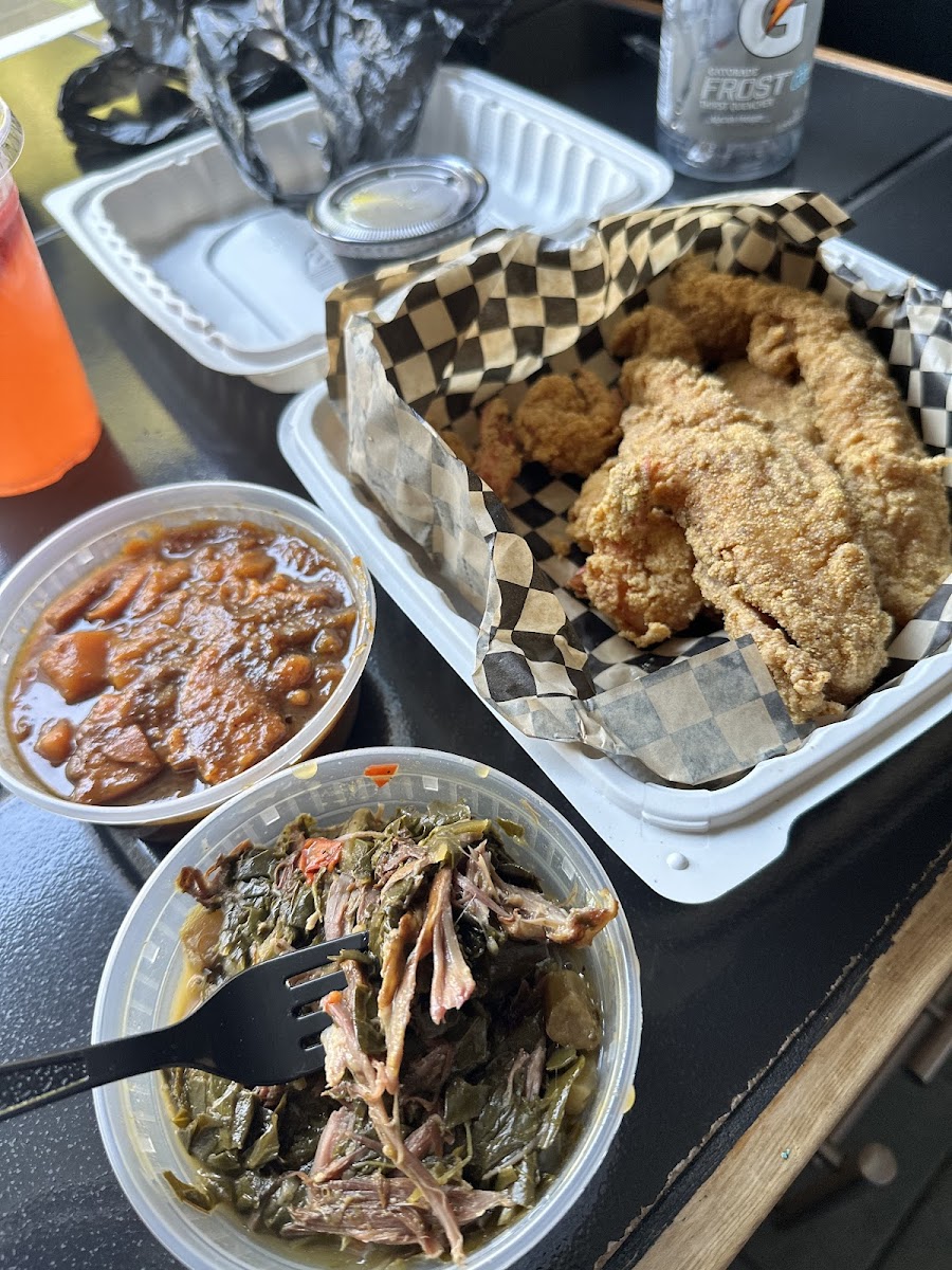 Prefacing this with I am NOT from the area. First, I want to highlight the service. The young lady that was working the window today (Mar 20th) was so sweet and had a really positive attitude. This is important because, well, this is Oakland. The wait for the food will typically be about 30-40 minutes so I highly recommend placing your order online and picking up when the time nears. This is NOT a dine-in restaurant. You approach the window, grab your plate and GO. I love this model personally. Too many food service businesses try and do the bar/nightclub thing, sometimes it’s just too much. Also recommend keeping an eye on their instagram as they post when they’re sold out of something or if the hours are altered. This is a well-operated black-owned, small business and I had no hesitation spending my dollars here. Now for the food quality: I got the Basa fish combo. I wasn’t TOO crazy about the fish and wish it was fried harder which, i’m sure if you asked they’d accommodate. The flavor was there and it had some crunch. The shrimp was delicious. The star of the show, in my opinion were the YAMS and COLLARD GREENS. I’m from the South and it was really nice to have found a place out west that sells true soul comforting food. The Strawberry Passion luxenade was on point (THANK YOU for not making it taste like liquid diabetes!) Overall 8/10 Expect to spend about $40-$50. Again, the Quality is there.